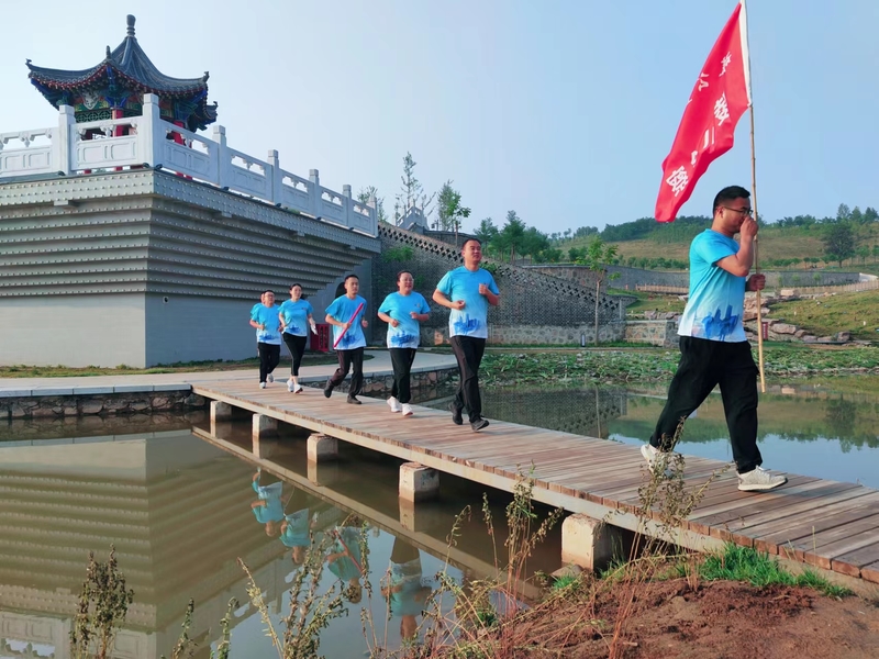 2022年7月2日快乐彩虹健跑团禁毒公益健康跑第一次打卡在城东水系东岸(南洋花城),30人庞大队伍,身穿统一禁毒丅恤,喊着“珍爱生命,远离毒品,无毒晋城,你我同行”口号,个个精神抖擞,奔跑在红色木板桥上,咚咚咚的脚步声,警示着所有人珍爱生命,远离毒品,利国利民又利己。