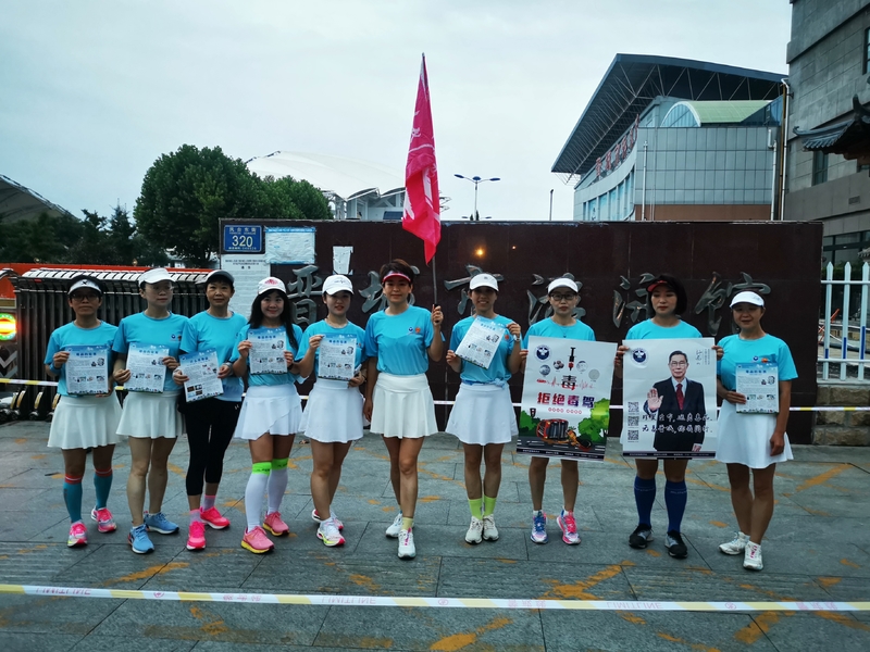 2022年7月1号毽球跑团在四川广元宝轮昭化活动,这里的人们看到我们穿禁毒衣服也纷纷过来咨询。
