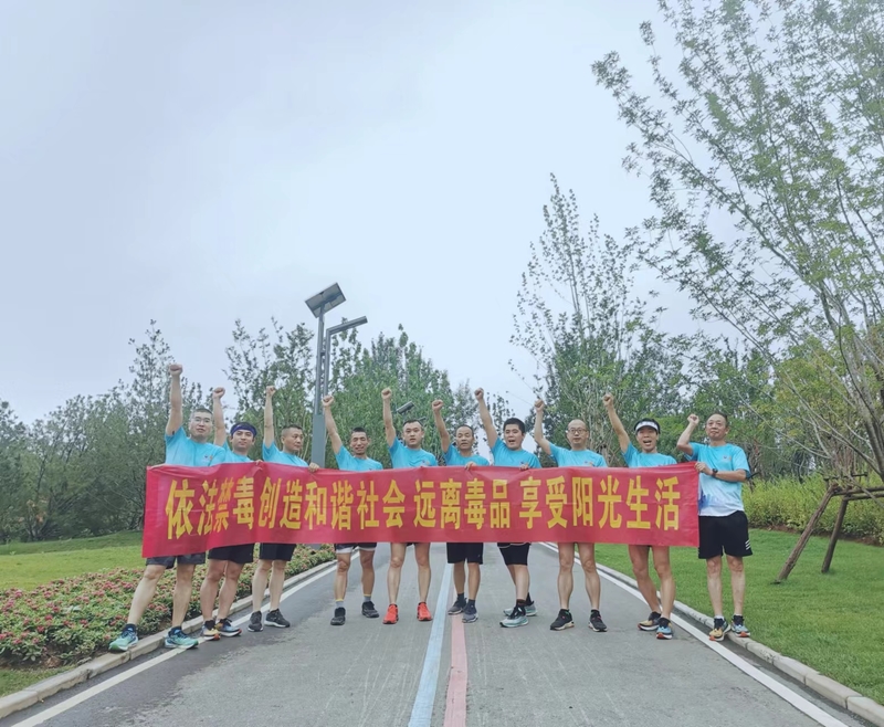 7.2日吴王山跑团黄华街组在网红桥下面凤展时光里门口小广场宣传禁毒知识,跑步,我们的口号是“珍爱生命远离毒品,无毒晋城你我同行。”
