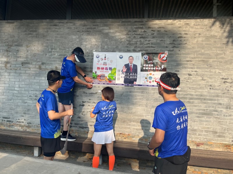 每组(单位)选派10名参赛者(至少含2名女性)接力,并完成途中设置的禁毒知识趣味答题。