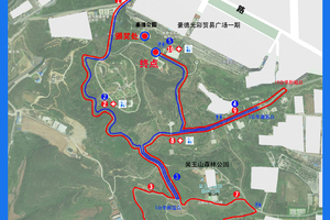 5公里路线:起点设在晋城豪德光彩贸易广场(二期)中心街,穿过西环路沿吴王山绿道部分路段,终点设在晋城豪德公园。地图蓝色线条标示。