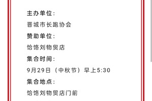 晋城市"庆中秋 迎国庆"健康跑报名开启! [复制链接]