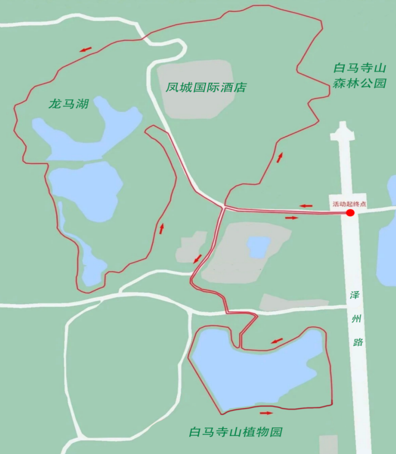 白马寺山广场-登上步道-龙马湖-白马寺山植物园-白马寺山广场,约6公里