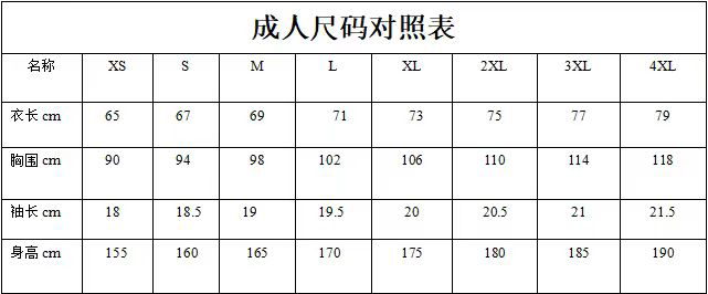 活动T恤及尺码