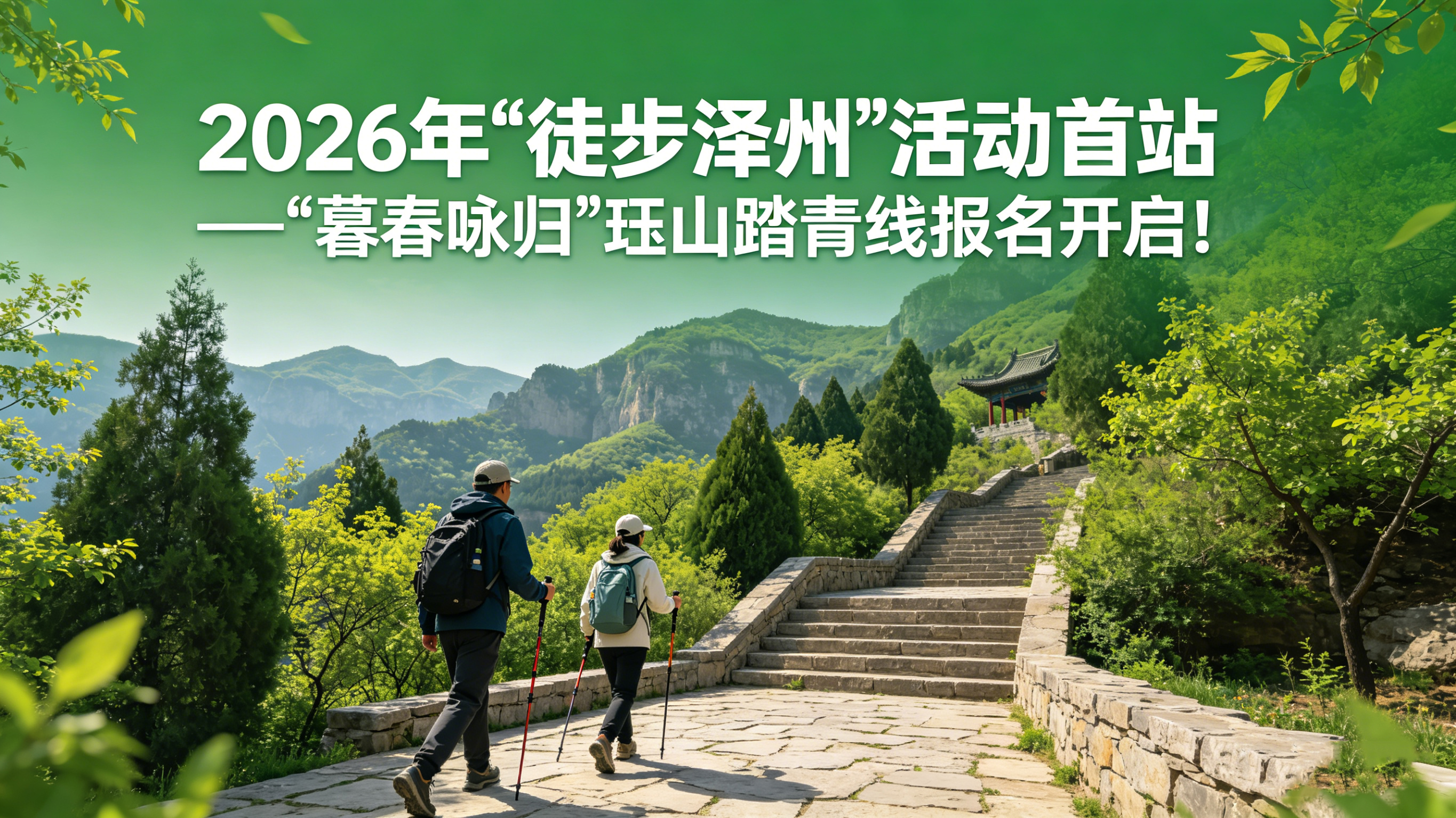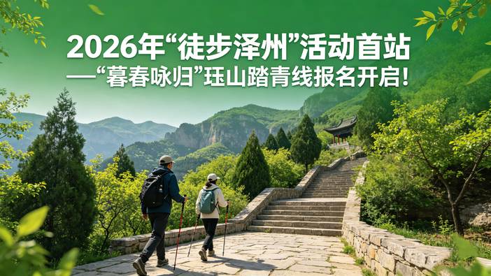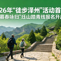 “在泽州看世界,让世界看泽州”。暮春时节,草木葱茏,古村炊烟萦绕,山河皆具诗意。2026年“徒步泽州”活动首站——“暮春咏归”珏山踏青线,正式开启报名通道,诚邀热爱自然、钟情户外的你,共赴一场踏春寻古、逐风而行的徒步之约!活动基本信息活动时间:2026年4月19日(周日)上午9:00活动起点:珏山景区牌楼(统一集合、统一出发)活动对象:身体健康、热爱户外运动的广大公众(未成年人需监护人全程陪同)报名费用:10元/...
