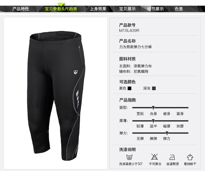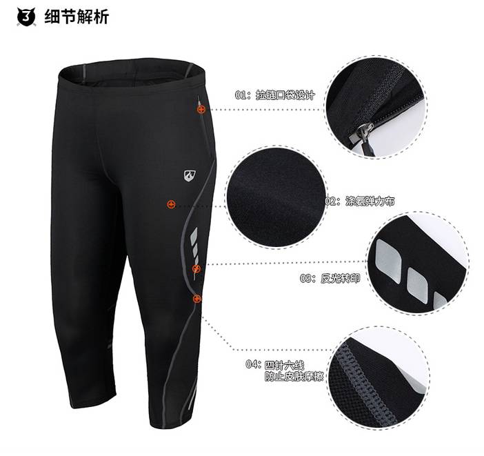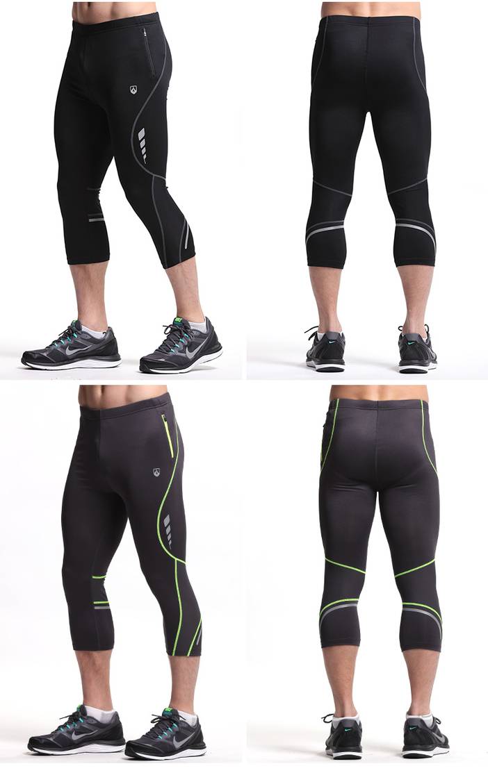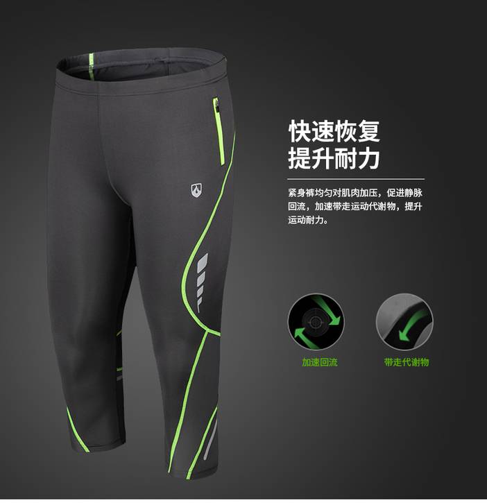 【新品】力为leevy、专业跑步紧身裤、男运动七分裤、速干弹力田径健身训练裤