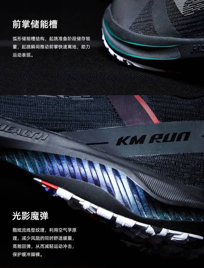 光影魔弹:酷炫流线型纹理,利用空气学原理,减少风阻的同时舒适缓震,高能回弹,从而减轻运动冲击,保护缓冲脚踝。